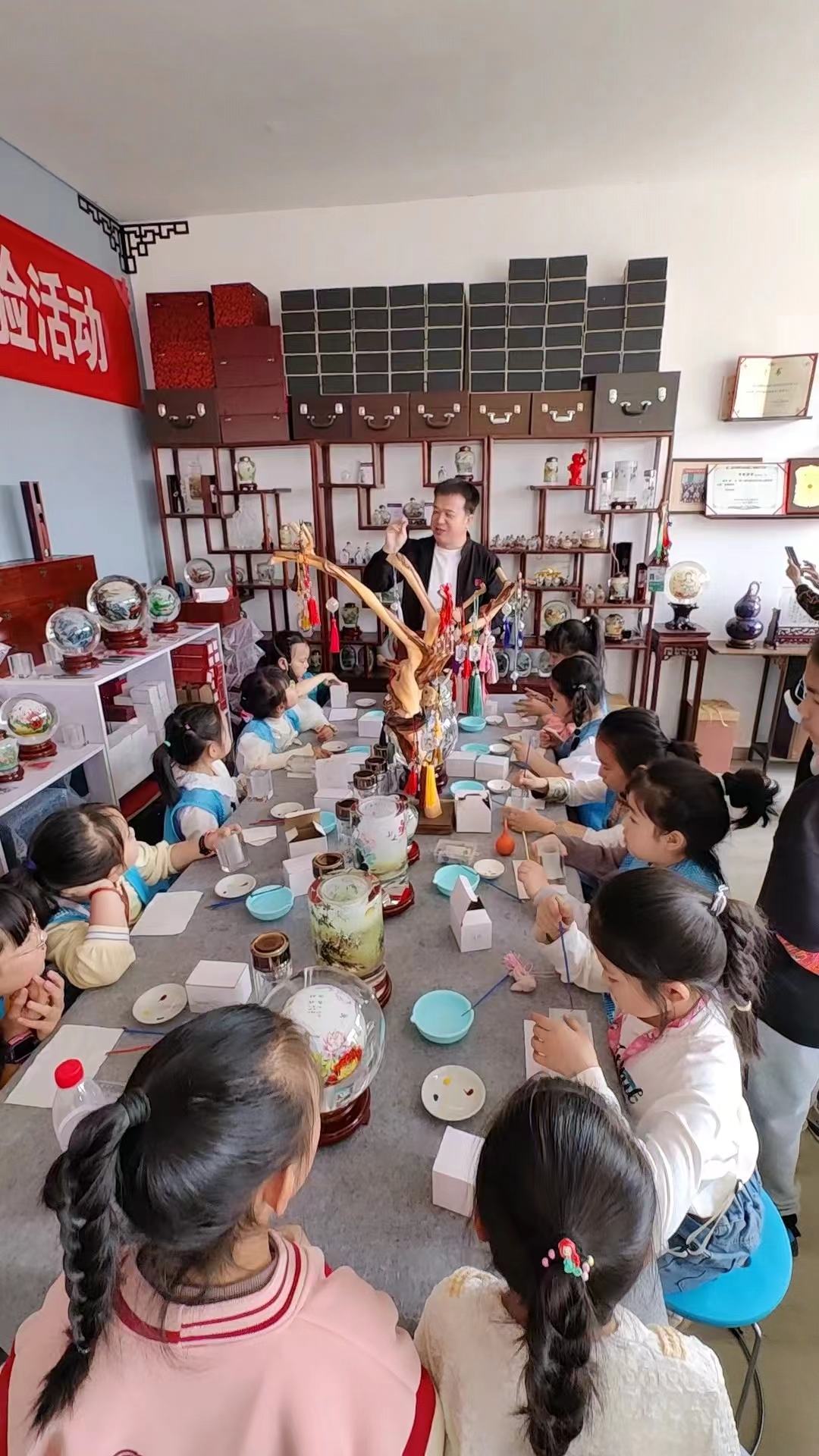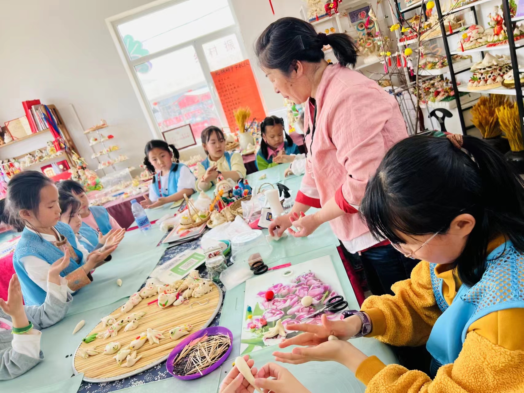 为迎接游客的到来,艺术区的非遗街老师们准备了面塑体验“寒燕燕”、葫芦烙画、糖画等适合清明节的研学课程,游客可以参观美术馆、体验陶艺制作等。