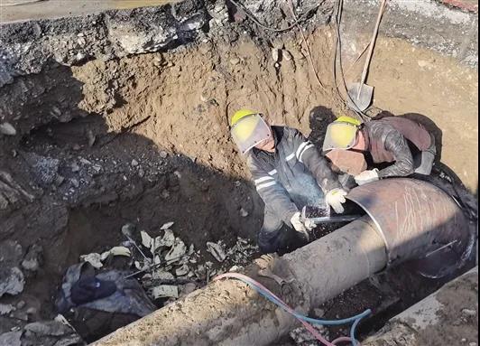 12月25日,包头市热力集团供热二公司职工将收集到的水进行化验,结果显示为一次网水质。工作人员迅速确定抢修、地面开挖、寻找漏点……让所有人最不想看到的是,漏点在一次网,还在支线的弯头下面……