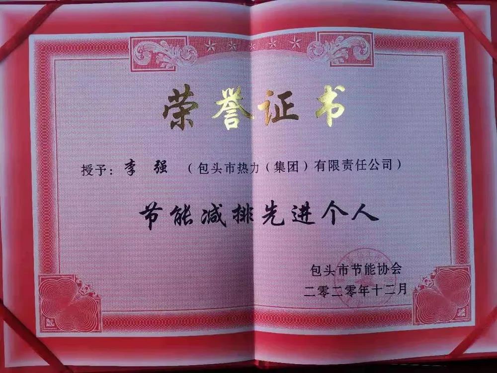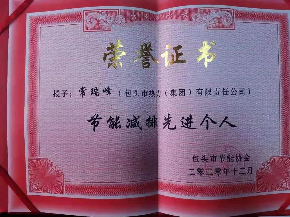近日,包头市节能减排协会授予包头热力集团公司“节能减排先进单位”荣誉称号。生产计划部李强、设备采购部常瑞峰分别获得“节能减排先进个人”荣誉称号。
