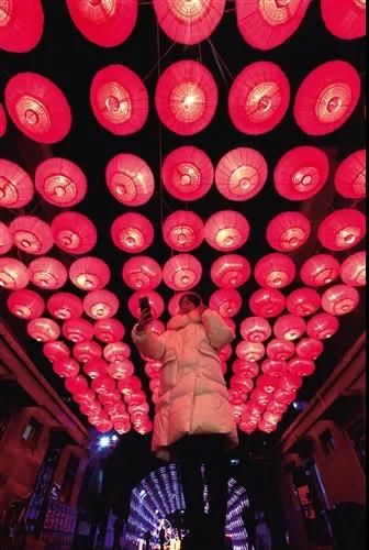 在昆区明日星城德景苑,小编看到门口的130个大红灯笼高高挂起。顺着小区大门往里走,首先映入眼帘的就是用数码灯带做成的长达十几米的时光隧道,灯光闪烁,再配上律动的音乐,让人感受到了浓浓的节日氛围。