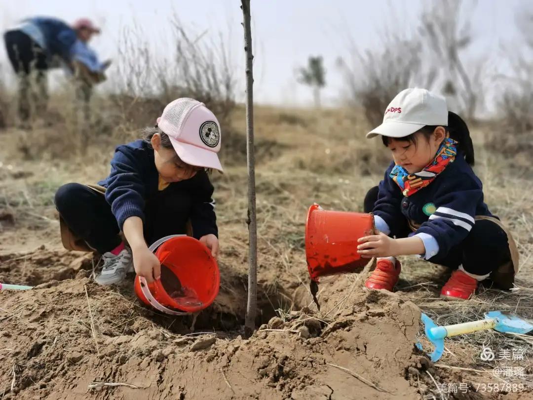 活动中,孩子们化身绿色使者,种下代表这希望与梦想的树苗小树。看着树苗迎风挺立,生机勃勃,他们的脸上绽放着笑容,奶声奶气的表示要与相约与小树苗一起成长。