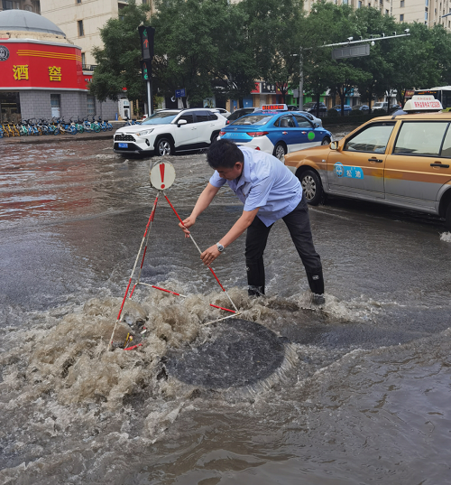 此次防汛应急工作中,市水务集团排水公司共出动高压清水车4台,竖向抓斗车2台,班组作业车辆7台,应急救援车1台,强力吸污车1台,动力站1台,完成重点路段放置警示标识65处。完成民族西路铁路桥、稀土大街与林荫路路口(吾悦广场)、阿尔丁北大街(啤酒厂)、友谊大街与鞍山道等重点路段积水抽排。