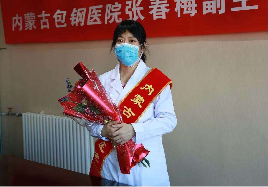为了抗击疫情,张春梅自愿报名与自治区4个盟市13家医院的20名医务工作者一起驰援湖北,和当地医护人员共同救治了43名新冠肺炎确诊病例和10名疑似病例。