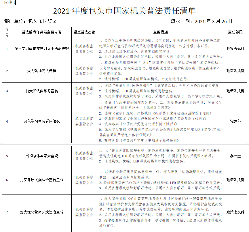 2021年度包头市国家机关普法责任清单