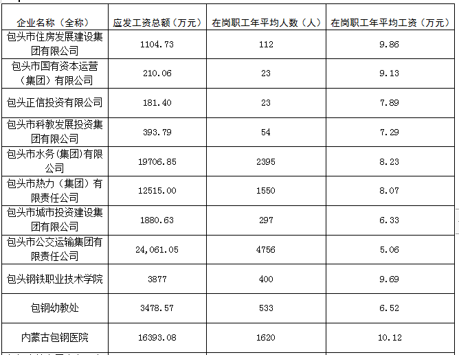 2020年包头市国资委部门所监管企业工资总额信息披露表