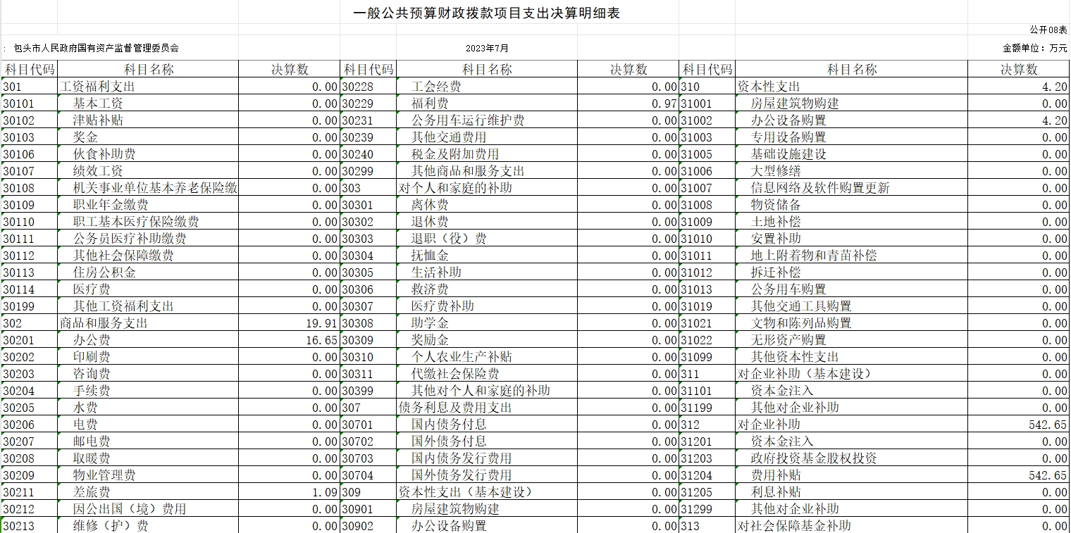 包头市人民政府国有资产监督管理委员会一般公共预算财政拨款项目支出决算明细表