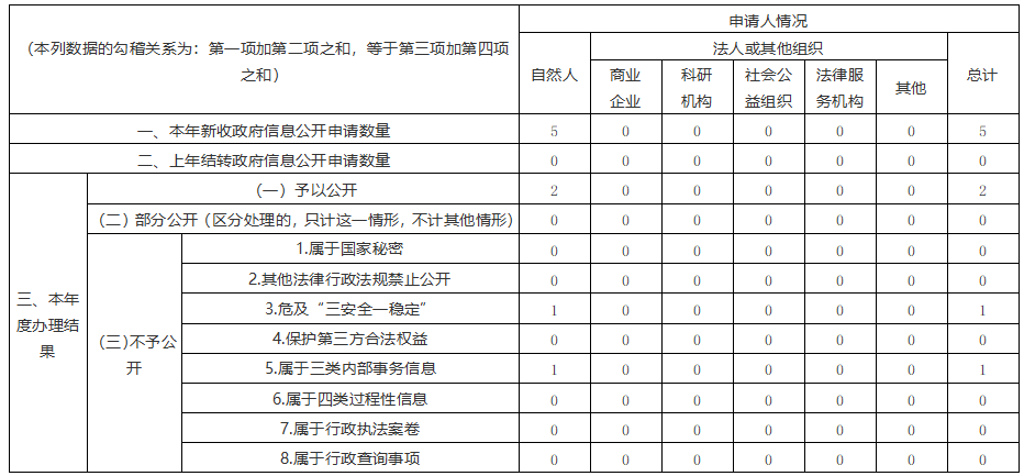 三、收到和处理政府信息公开申请情况